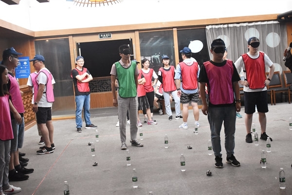 蒙眼的負責作戰(zhàn),背對著負責發(fā)號施令,其余人等負責指揮,作戰(zhàn)的聽取司令的號令,指揮人員給司令員下達行動指令。不能胡亂干涉,又需協(xié)同合作。