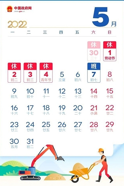 2022年4月30日-5月4日放假調(diào)休,共5天。5月7日(星期六)我們正常上班。節(jié)前各位同事安排好工作,配合行政做好清潔打掃工作,檢查好電源開關(guān),關(guān)好門窗。節(jié)日期間,請(qǐng)大家注意人身安全和財(cái)產(chǎn)安全,愉快的度過(guò)假期。