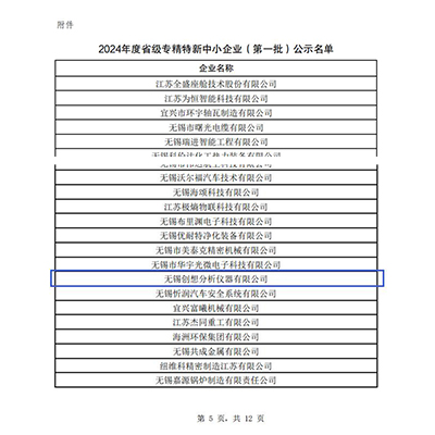 無錫創(chuàng)想分析儀器有限公司榮膺2024年度省級專精特新企業(yè)